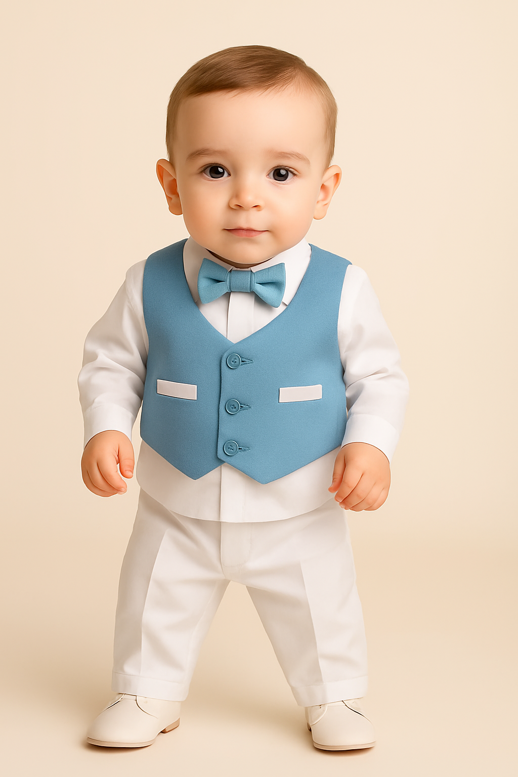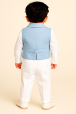 Dress your little gentleman in timeless charm with this beautifully coordinated 4-piece light blue suit set. Designed for weddings, birthdays, christenings, and all special celebrations, this outfit blends classic tailoring with soft, modern tones- perfect for picture-perfect moments.