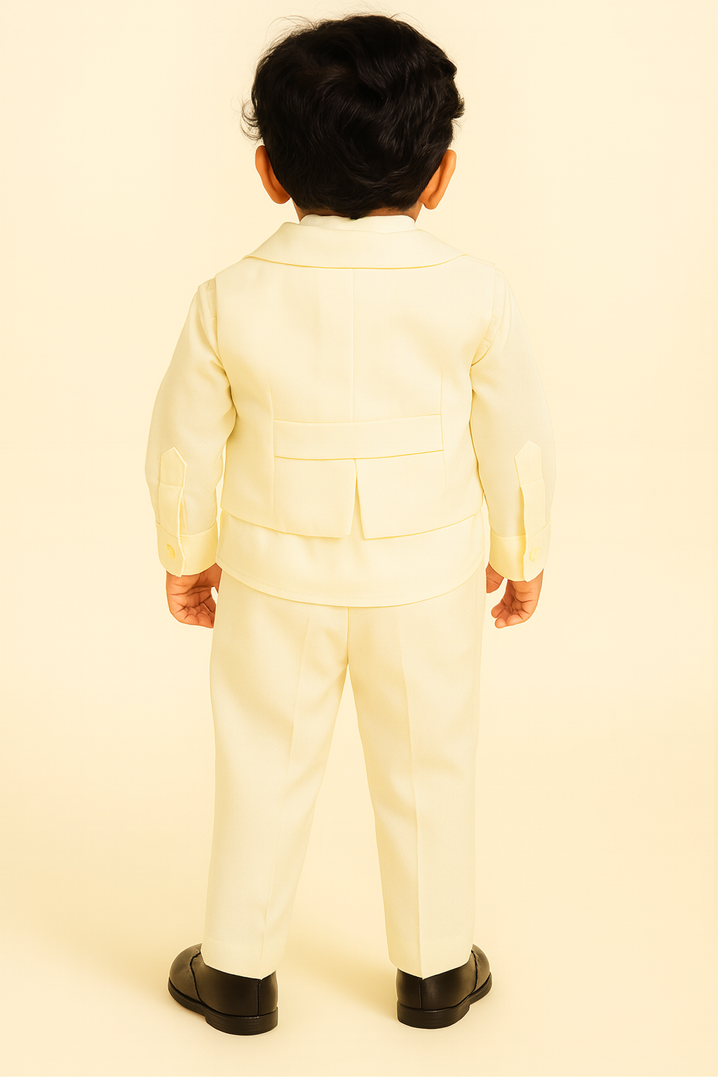 Dress your little one in timeless elegance with this beautifully coordinated 4-piece ivory suit set. Perfect for weddings, christenings, birthdays, and special celebrations, this outfit combines classic tailoring with adorable charm.
