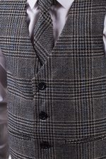 – Grey and black, with blue checked waistcoat