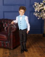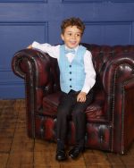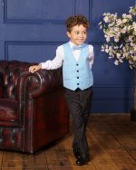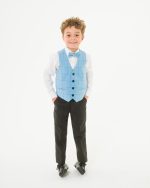 A premium luxury suit by designers Milano Mayfair. This complete 4 piece slim fit suit comes with trousers with adjustable waist, matching 4 button waistcoat, crisp white shirt and a bow tie to complement the suit. Make your little gent look stunning and make every moment memorable with this suit
