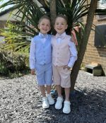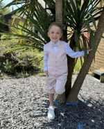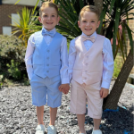 - Waistcoat: Matching light pink waistcoat for a coordinated appearance.