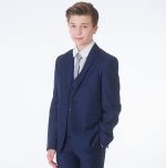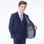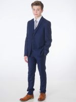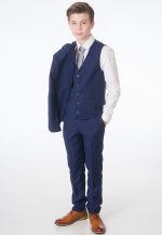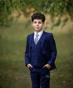 A premium luxury suit by designers Milano Mayfair. This complete 5 piece slim fit suit comes with a 2 Button Jacket, trousers with adjustable waist, matching 4 button waistcoat, crisp white shirt and a tie to complement the suit. Make your little gent look stunning and make every moment memorable with this suit. This premium suit comes in a Milano Mayfair suit bag.