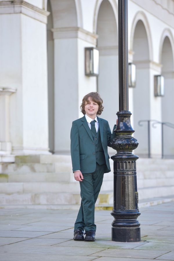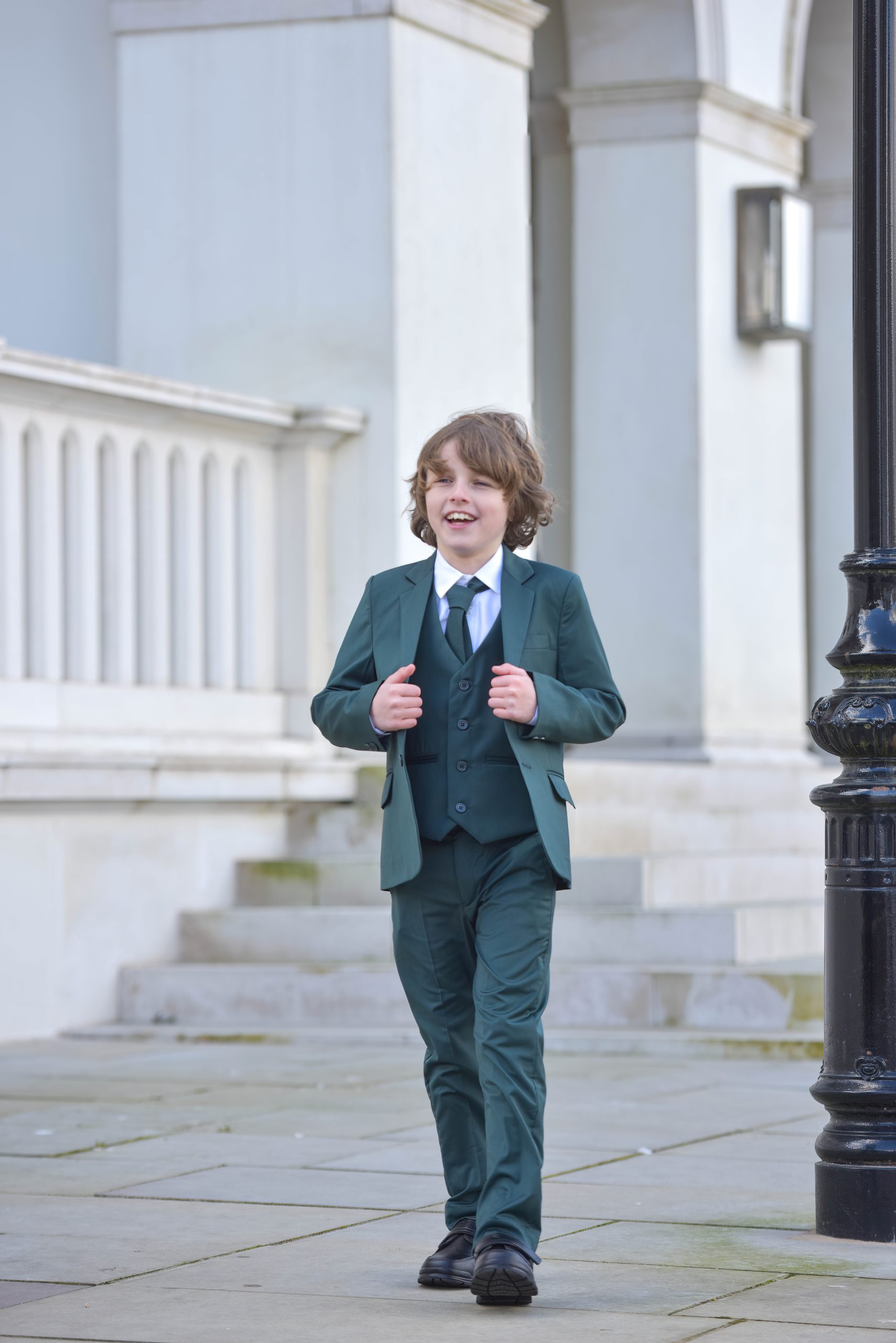 The boys’ Dark Green Premium Suit features a sleek, tailored design in a dark green fabric, offering a contemporary yet timeless appearance. Paired with a matching dark green tie, the suit combines classic sophistication with a subtle contrast, making it suitable for formal occasions such as weddings, parties, or special events. The stone shade adds a refined touch, while the navy tie introduces an element of versatility and elegance.