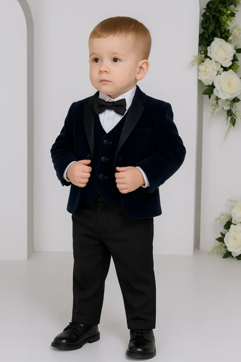 Baby Boys Navy Velvet Tuxedo Suit Milano Mayfair 5 Piece