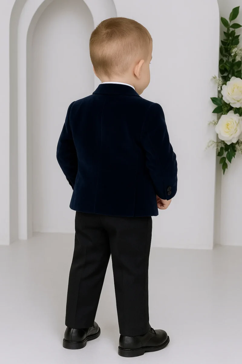 Be the first to review “Baby Boys Navy Velvet Tuxedo Suit Milano Mayfair 5 Piece”