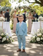 Made from durable yet lightweight fabrics, our steel blue Boys Suit combines style and comfort, allowing ваш child to move freely while maintaining a refined appearance.