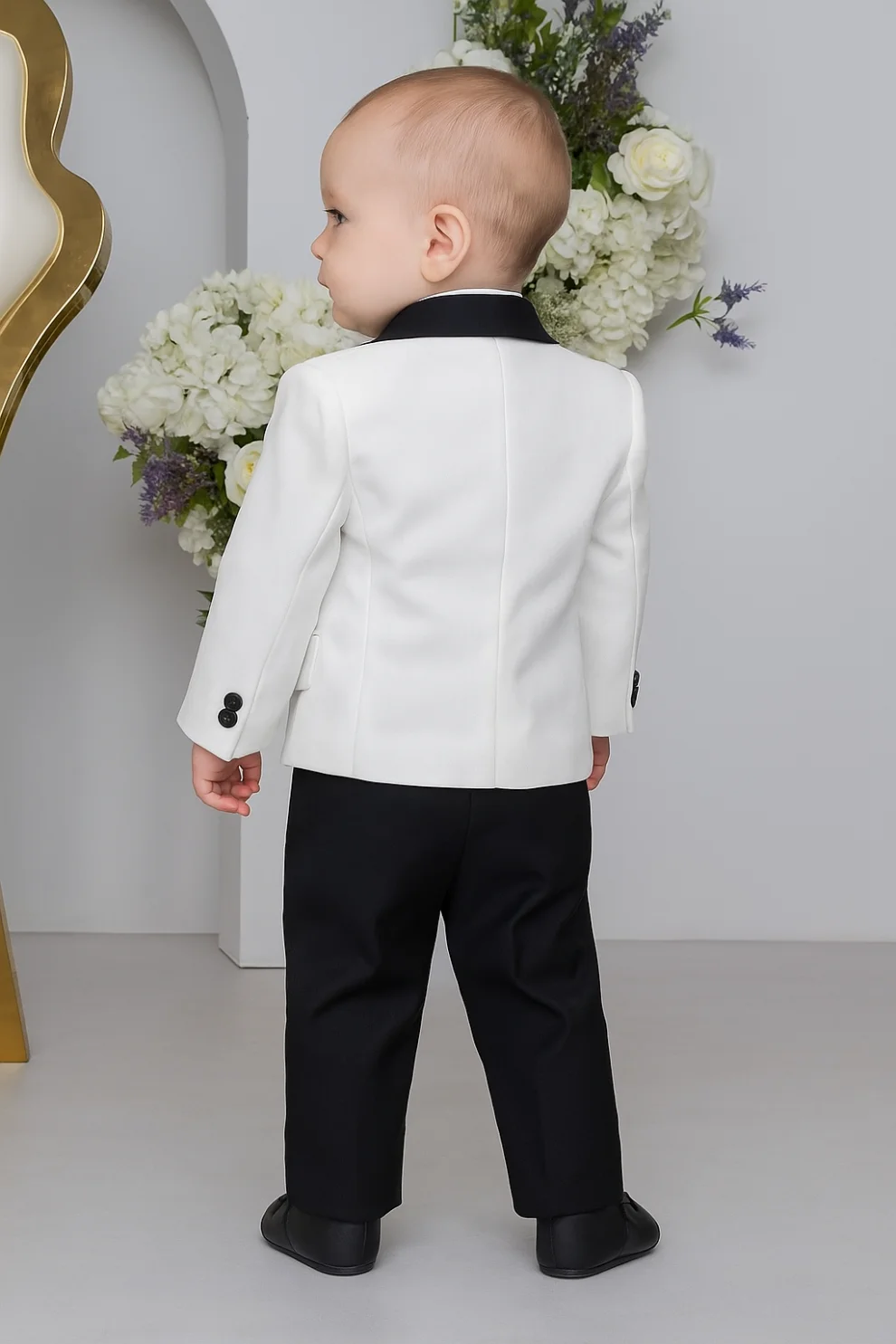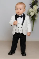 Baby Boys White/Black Tuxedo Suit Milano Mayfair 5 Piece