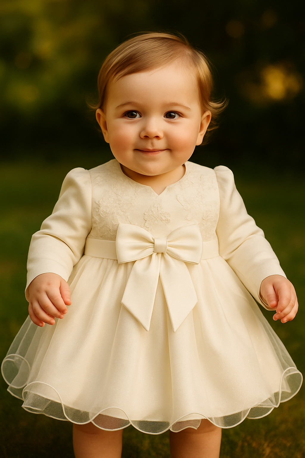 - Skirt: Layers of soft tulle create a beautiful, flowing silhouette, perfect for christenings and special occasions.