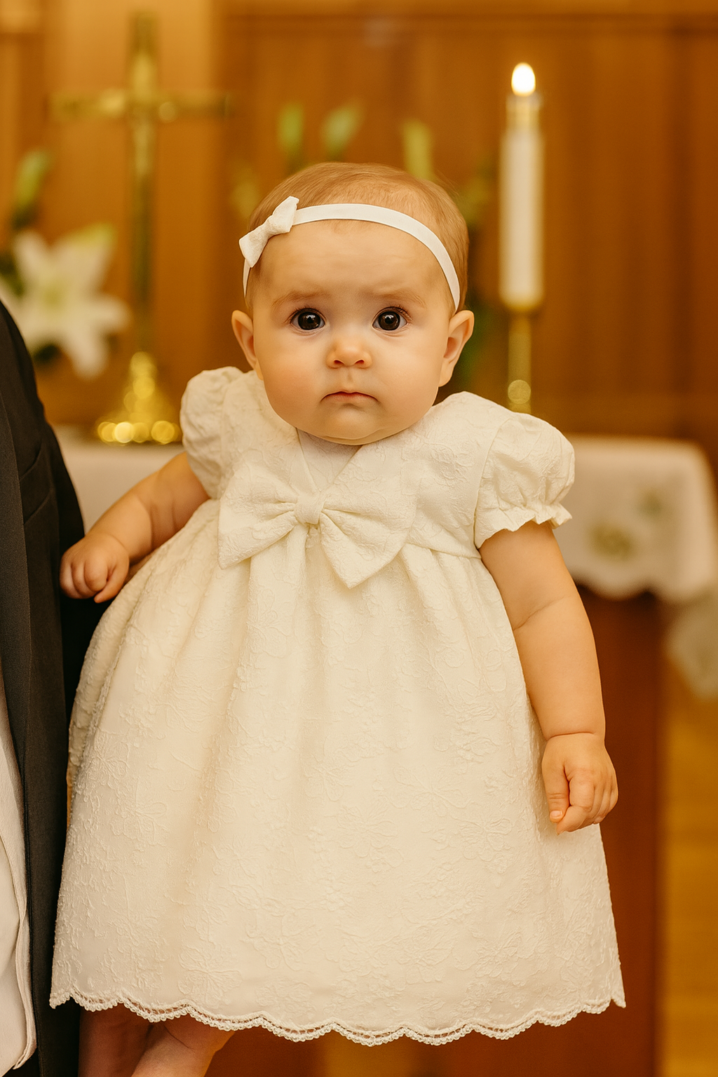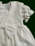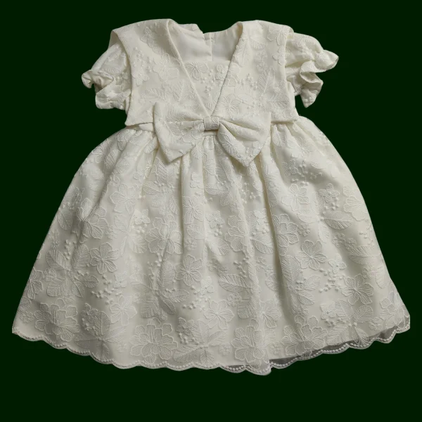 - Overall Look: This dress’s combination of puffed sleeves, floral embroidery, and a bow at the waist makes it a perfect, elegant choice for christenings, baptisms, or other formal ceremonies.