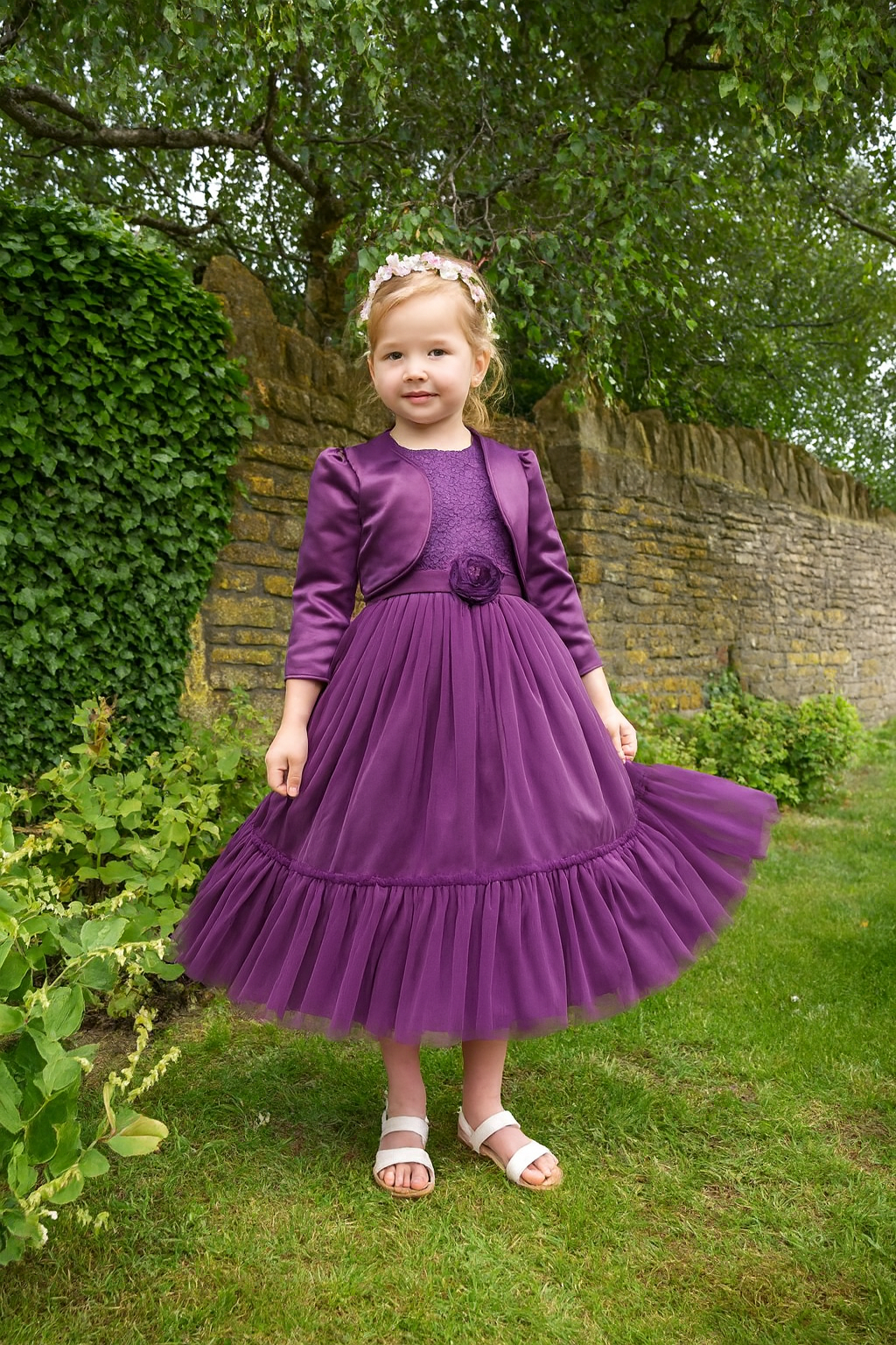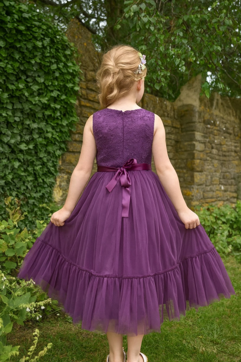 - Skirt: Fluffy, layered tulle skirt in a rich purple hue.
