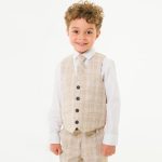 - Biege Check four button waistcoat