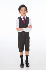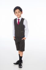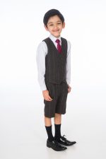 A super stylish Brown Check tweed suit, perfect to transform your little boy into a stylish gentleman. This high quality stylish suit consists of a fitted waistcoat and trousers in a stylish Grey herringbone tweed. A crisp White shirt and Blue tie complete the gentleman look.