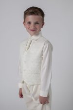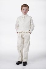 This 4 piece Vivaki suit comes with Cream trousers, a Cream shirt and a matching Cream dobby design cravat and waistcoat. This lovely 4 piece suit is perfect for a wedding, page boy, christening, first holy communion, school prom, party or any other Special occasion. These suits have a comfortable and high quality feel to them.