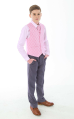 - Pink waistcoat and features a silver stitch pattern