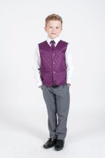 - Purple waistcoat (available in different colours) and features a silver stitch pattern