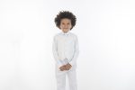 - A white collar full sleeve shirt