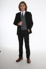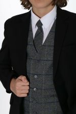 Boys 5 Piece Black Suit with Blue Check Michael