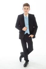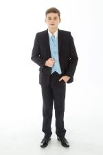 This 5 Piece Swirl suit is great for all formal occasions and in the highly popular combination of Black with Blue , your boy will stand out in the crowd.