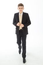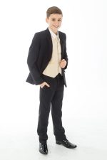 Boys 5 Piece Black suit with Champagne waistcoat Henry