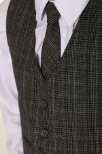 – Grey and white checked waistcoat