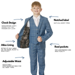 Boys Blue Check 5 Piece Suit