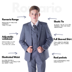 Introducing our affordable yet dapper Grey Romario Boys Suit, designed to bring a touch of sophistication to any young gentleman’s wardrobe without breaking the bank. Crafted with attention to detail and quality materials, this suit offers a smart and polished look for various occasions.