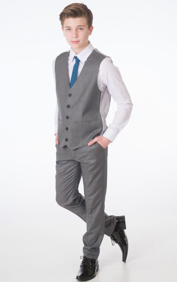 - Grey four-button waistcoat