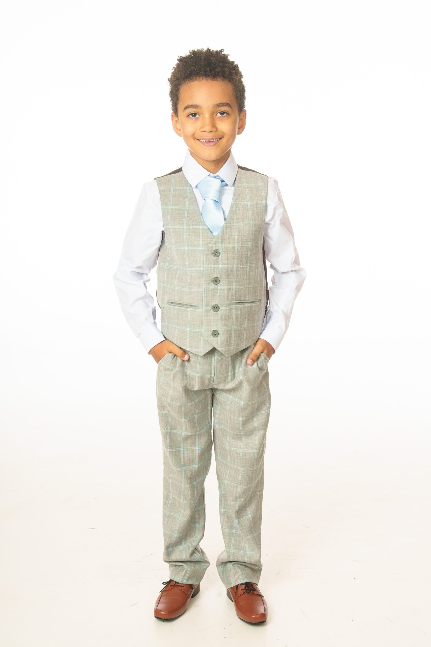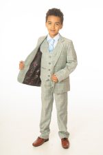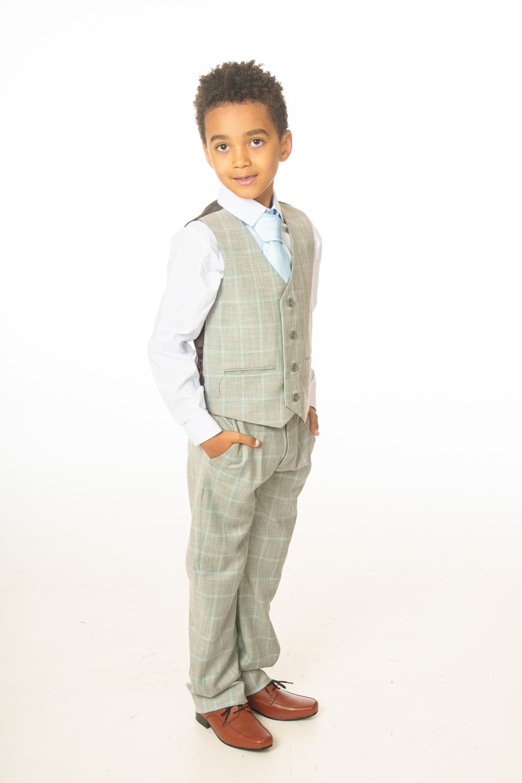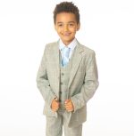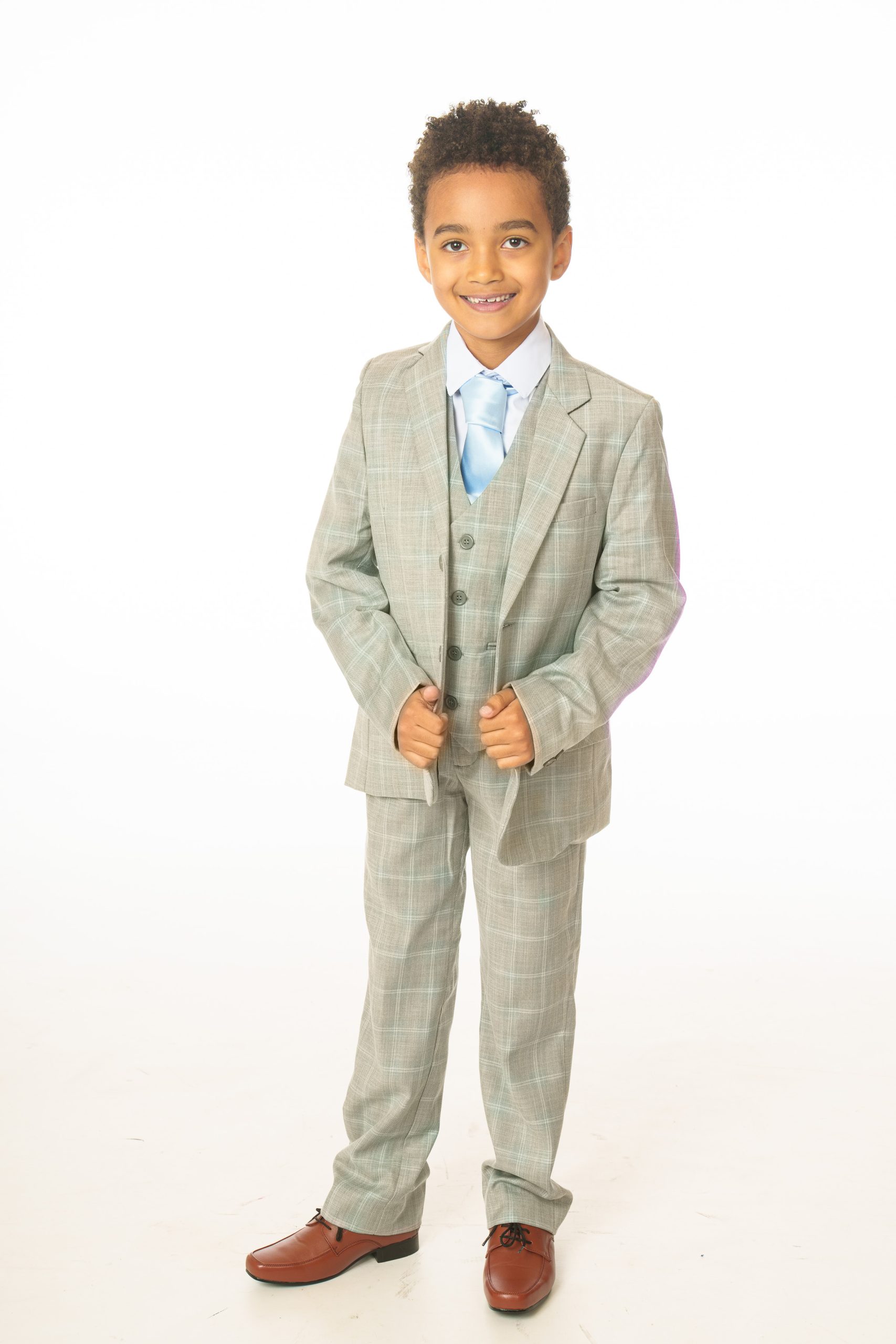Baby Boys 5 Piece Grey with Blue Check Suit