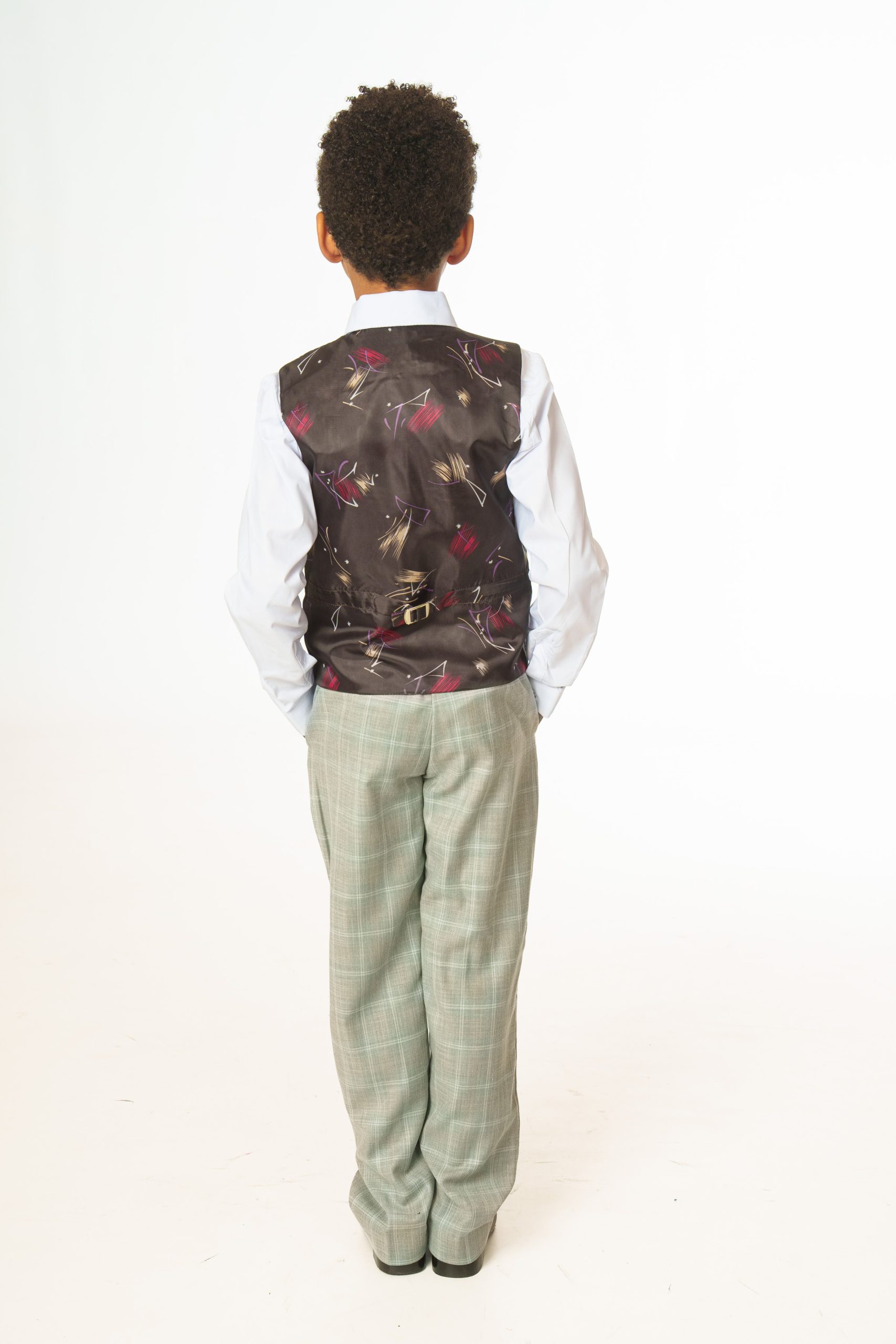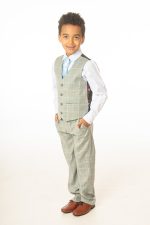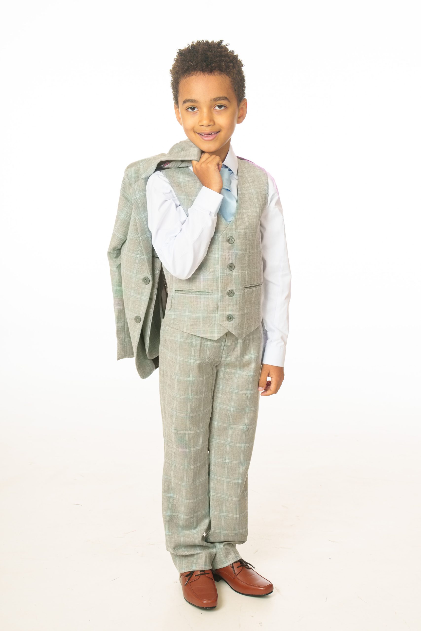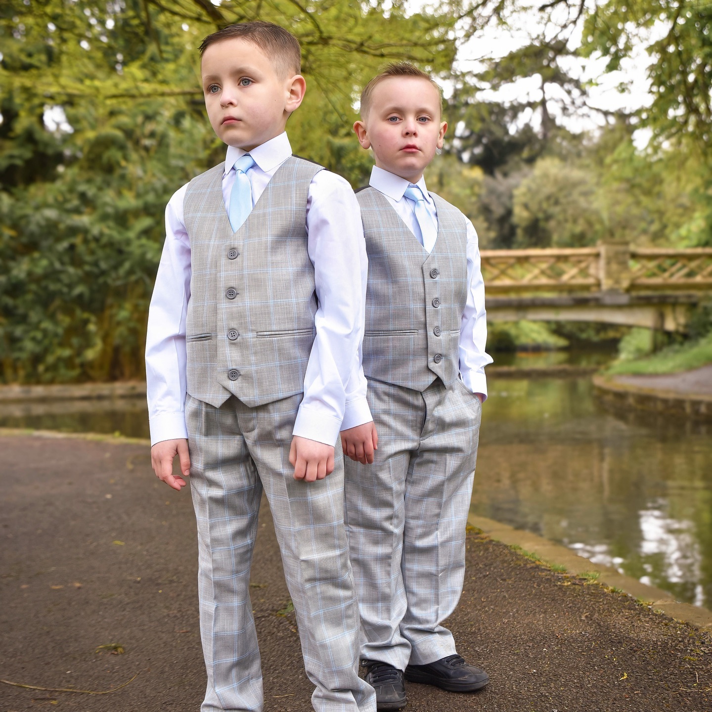Baby Boys 5 Piece Grey with Blue Check Suit