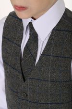 – Grey and white, with blue checked waistcoat