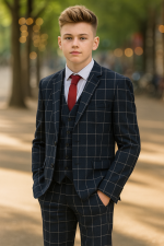 The Boys 5 Piece Navy with White Check Suit