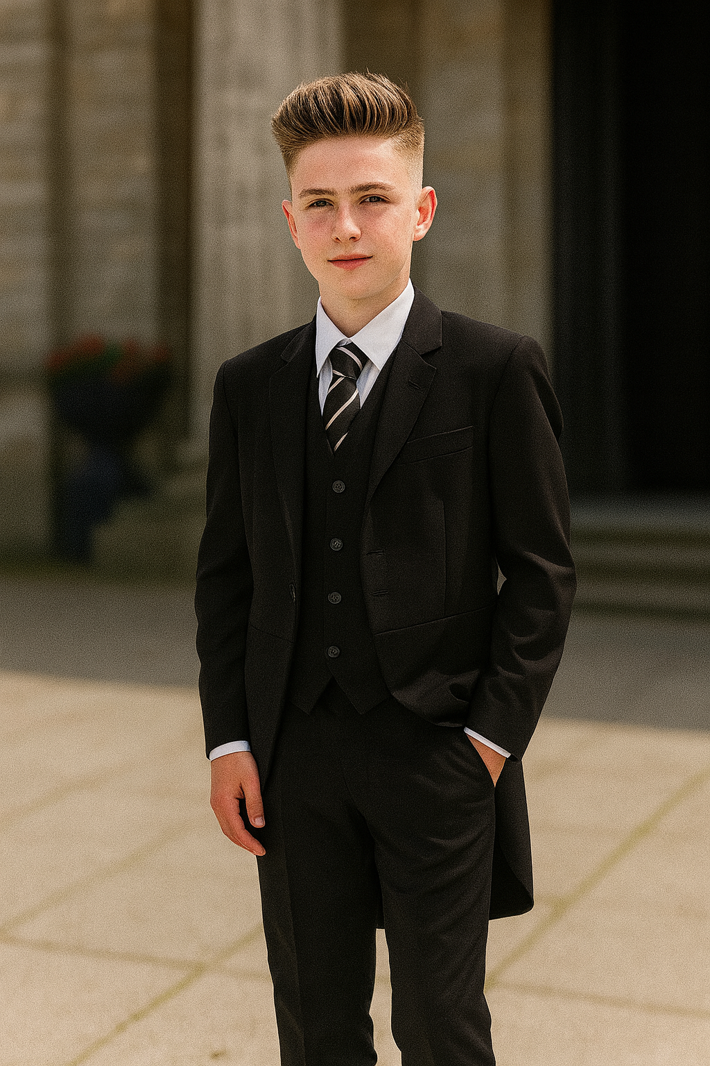 This 5 piece tailcoat suit is great for all formal occasions and in the classic Black colour which will make your boy stand out in the crowd.