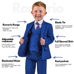 Introducing our affordable yet dapper Blue Romario Boys Suit, designed to bring a touch of sophistication to any young gentleman’s wardrobe without breaking the bank. Crafted with attention to detail and quality materials, this suit offers a smart and polished look for various occasions.