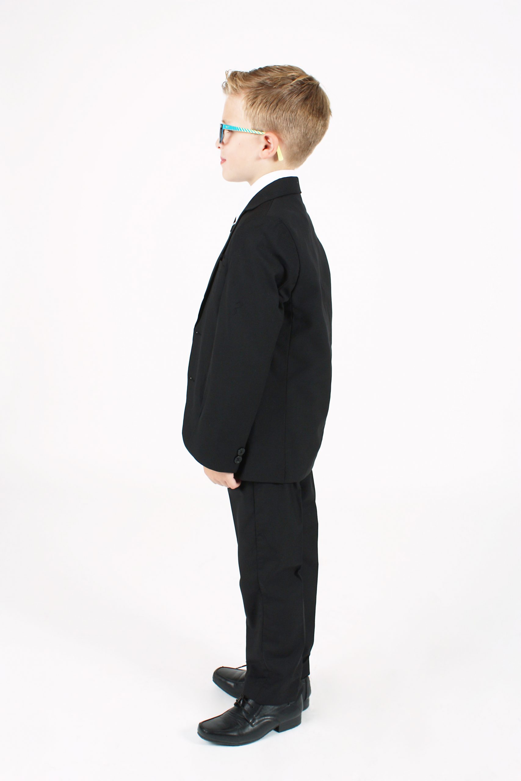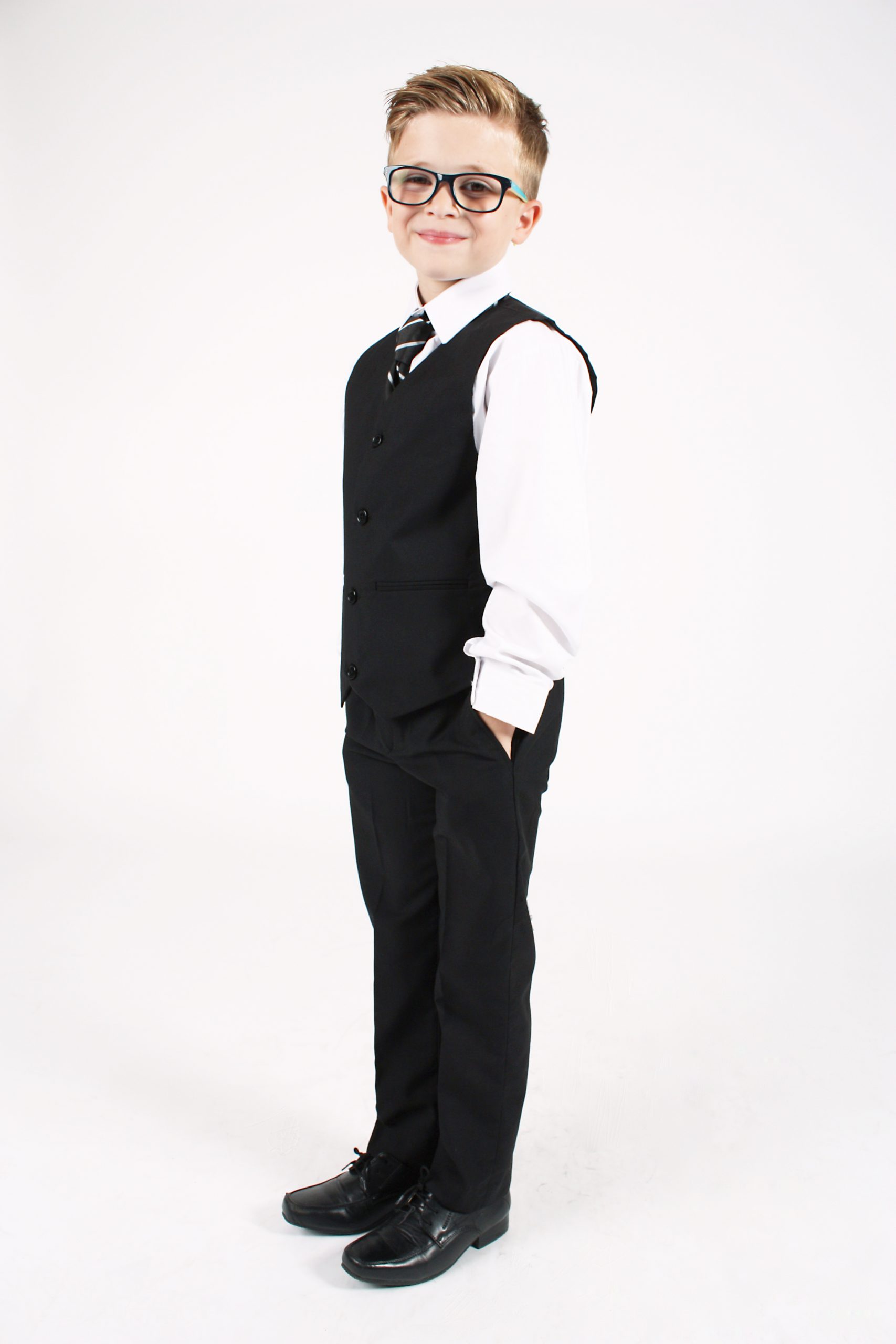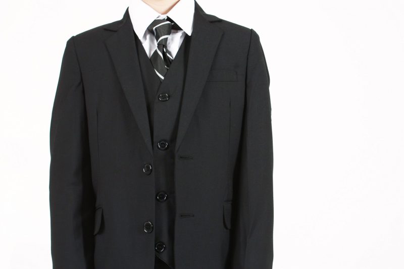 - A coordinating four-button black waistcoat