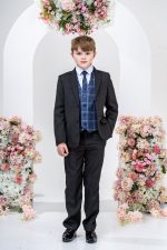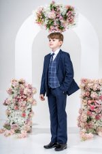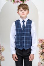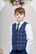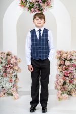 This stylish suit is part of the Vivaki Collection, with it’s incredibly eye catching navy check waistcoat and matching tie, makes it perfect for any special occasion!