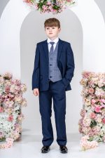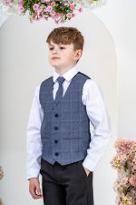 This stylish suit is part of the Vivaki Collection, with it’s incredibly eye catching navy check waistcoat and matching tie, makes it perfect for any special occasion!