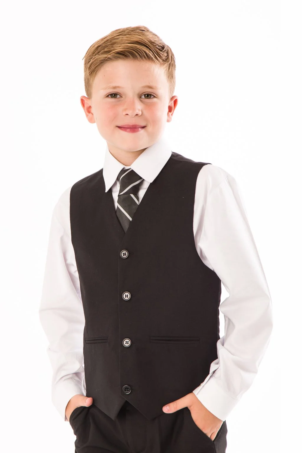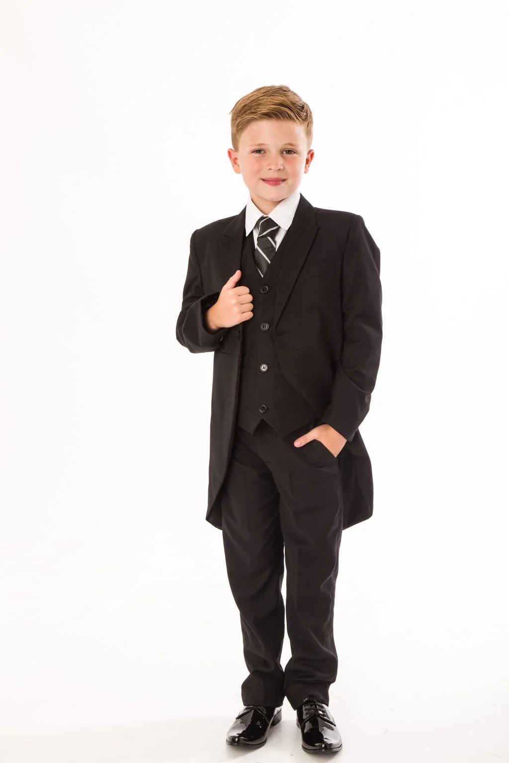 This 5 piece tailcoat suit is great for all formal occasions and in the highly popular Black colour which will make your boy stand out in the crowd