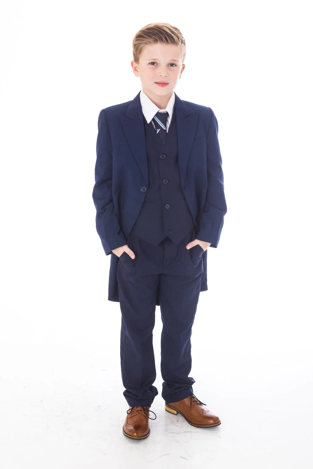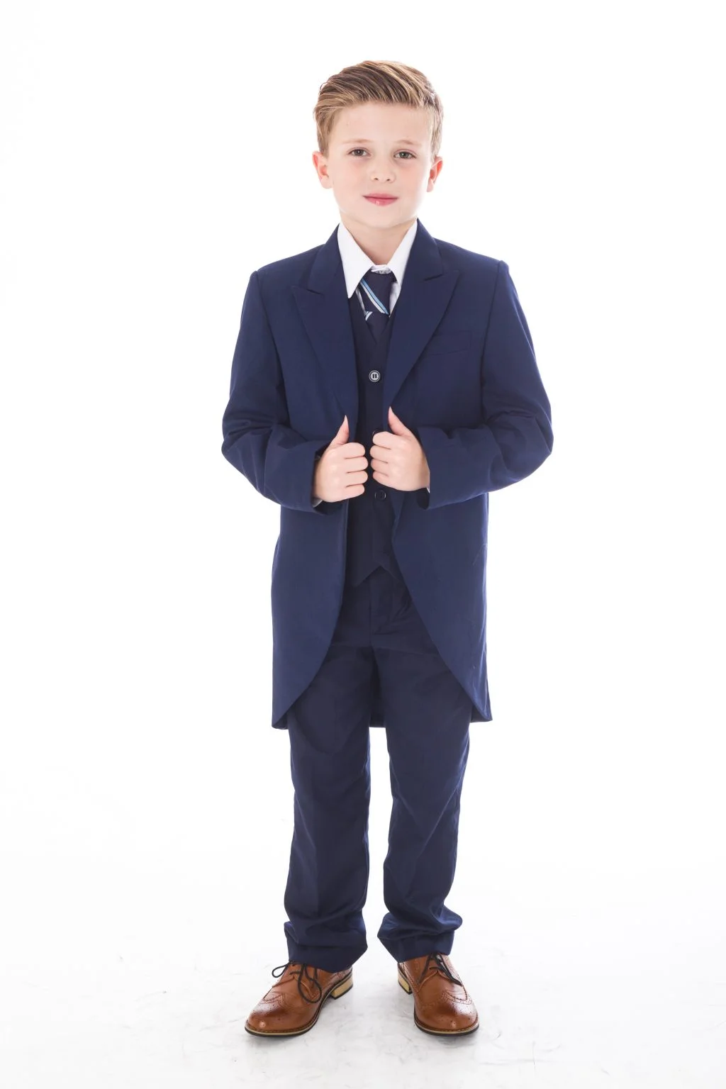 This 5 piece tailcoat suit is great for all formal occasions and in the highly popular Navy colour which will make your boy stand out in the crowd