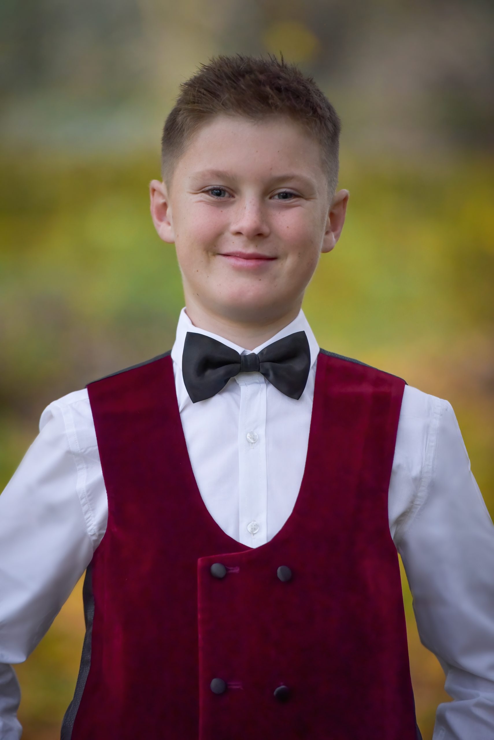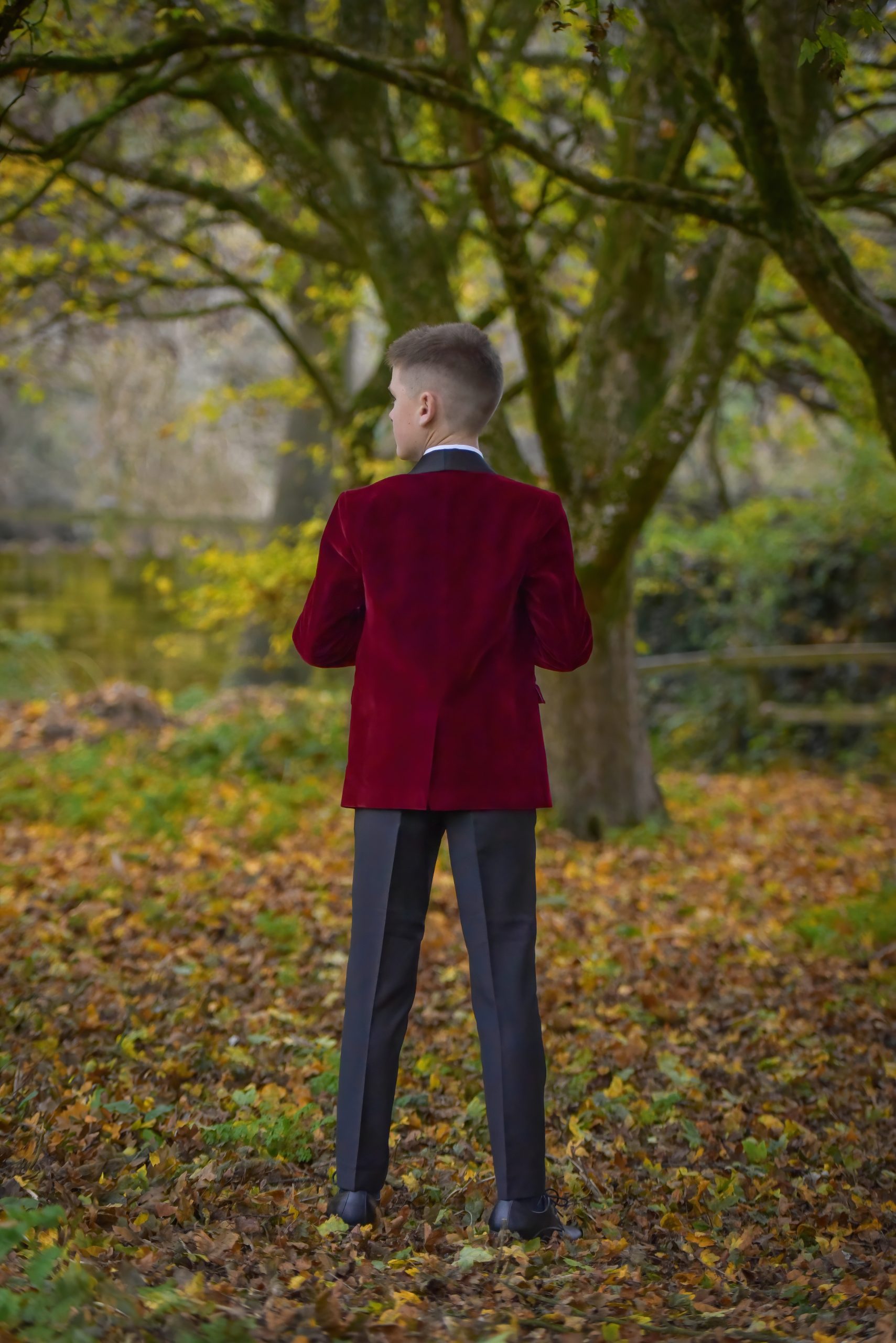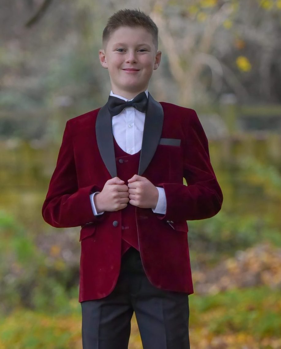 A premium luxury suit by designers Milano Mayfair. This complete 5 piece slim fit suit comes with a 2 Velvet Button Jacket, trousers with adjustable waist, matching 4 button waistcoat, crisp white shirt and a bow tie to complement the suit. Make your little gent look stunning and make every moment memorable with this suit. This premium suit comes in a Milano Mayfair suit bag