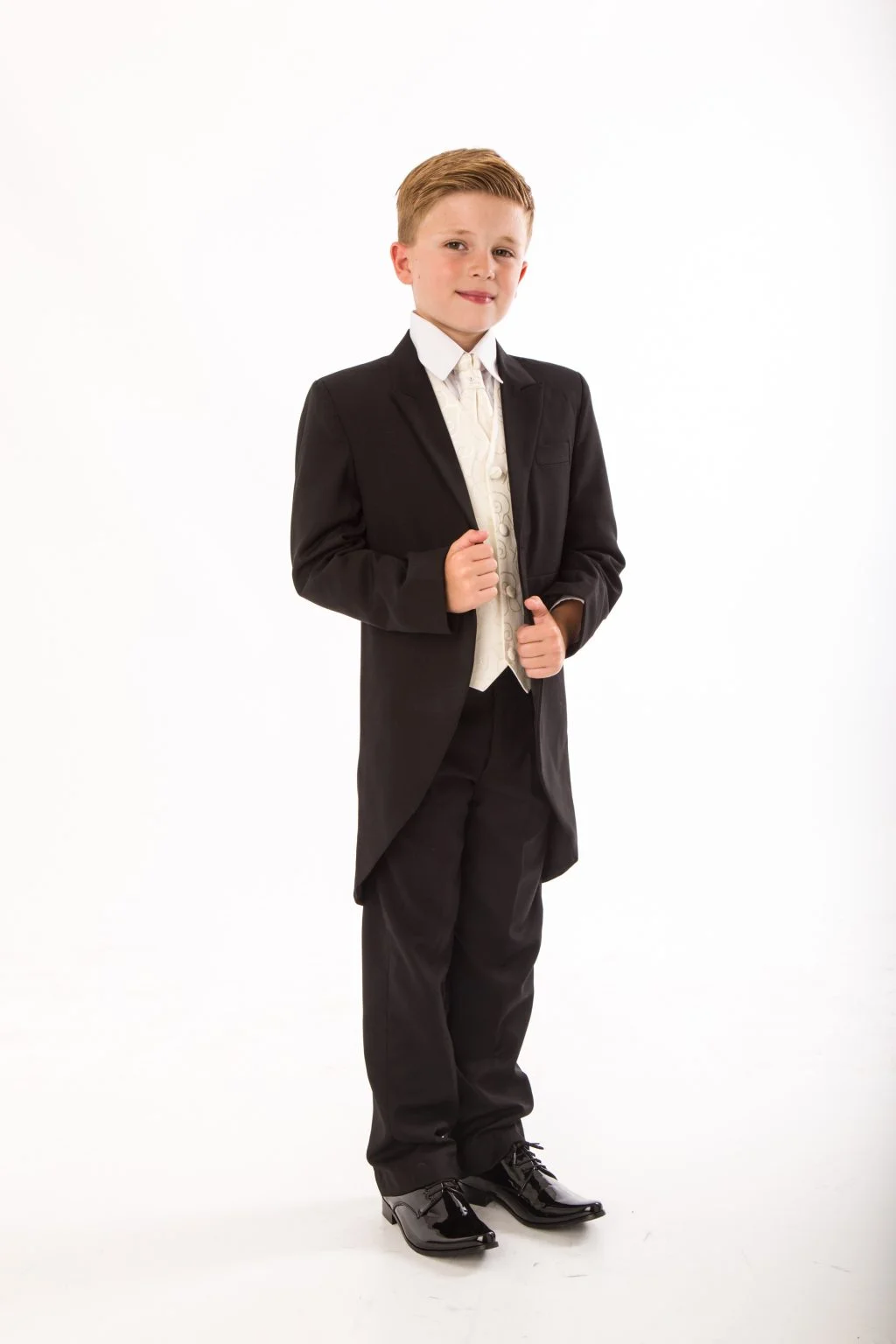 This five-piece tailcoat suit is ideal for all formal occasions and is available in the popular Cream color, ensuring your boy will stand out in any crowd.