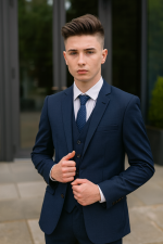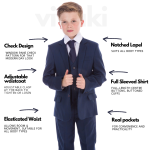 This 5 piece navy check suit is perfect for any formal or special occasion. The stunning check details set this suit apart and and are sure to bring compliments. A complete 5 piece set, this suit is the most popular choice for those looking for a check suit