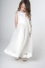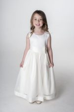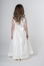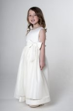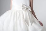 - Bodice: The dress features a fitted bodice that offers a sleek and elegant silhouette, seamlessly complementing the layered design of the skirt. The ivory-coloured sash at the waist adds a refined touch and is finished with a bow at the back, accentuating the waistline gracefully.