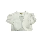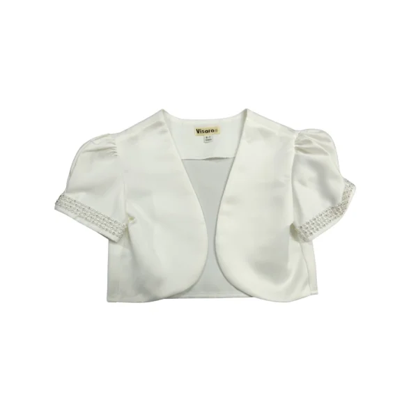 Short-sleeve bolero featuring a layered beaded trim along the sleeve edge.