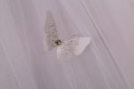 - Skirt: A satin peplum skirt adorned with butterfly-style embellishments flows into layers of soft tulle for a graceful effect.