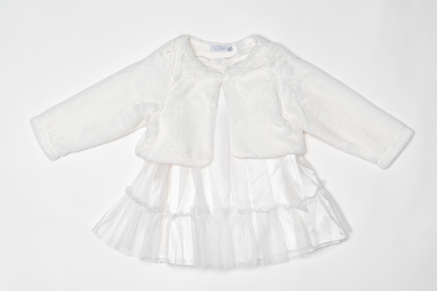 This ivory netted dress comes with ruffled detailing. has a double lining and a zip fastening.