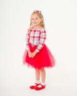 - Skirt: Red tulle A-line skirt that adds volume and elegance, perfect for twirling.