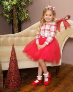 - Overall Look: This dress combines tartan with soft tulle for a charming, traditional look that’s perfect for any special occasion.