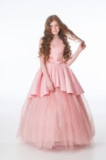 - Skirt: A satin peplum skirt with embroidered detailing flows into layers of tulle, creating a graceful and voluminous look.