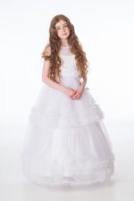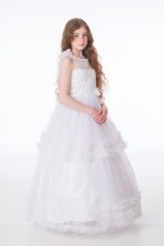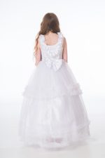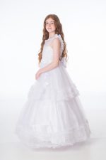-43%An elegant full length gown designed by Babooni. A glittery sheer neckline leads into a elegant bodice lined across the chest with delicate diamantes. A full length tulle layered skirt with frilly ruffles detailed with beautiful floral appliques. A hoop lines the inside of the bottom of the skirt to enhance the silhouette of the skirt.