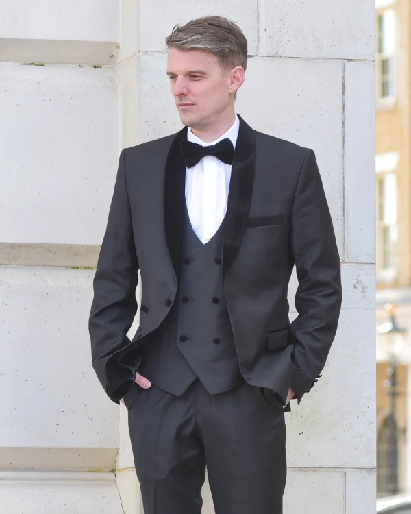 ✔ Black Waistcoat – A refined addition for a polished three-piece look with Velvet buttons